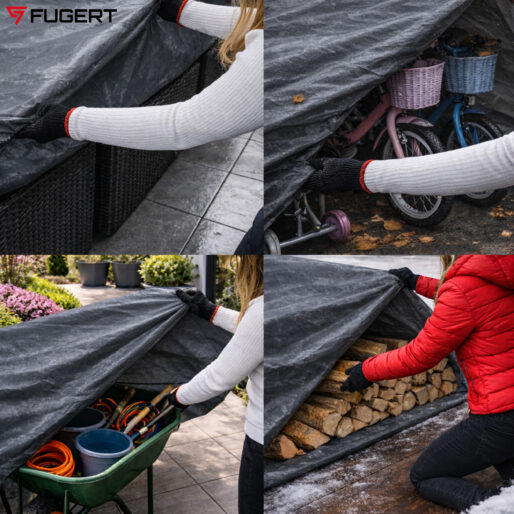 • Plandeka jest uniwersalnym rozwiązaniem ochronnym i może być wykorzystywana w wielu sytuacjach. Najczęściej służy do zabezpieczania drewna opałowego, mebli ogrodowych, materiałów budowlanych, sprzętu, pojazdów lub ładunków transportowych. Sprawdza się zarówno w ogrodzie, na budowie, jak i podczas transportu.