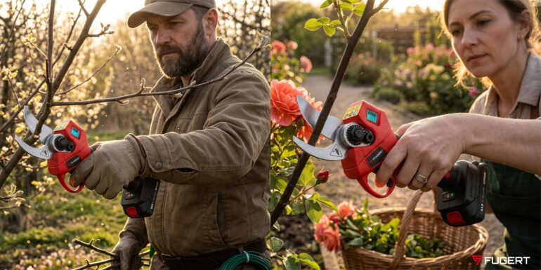 Sekator akumulatorowy 21V z silnikiem bezszczotkowym. Cięcie do 30mm, 2 baterie w zestawie i wyświetlacz LCD. Lekki, wydajny i precyzyjny – idealny do ogrodu!